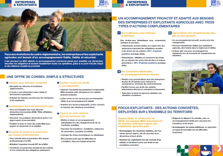 Face aux évolutions du cadre règlementaire, les entreprises et les exploitants agricoles, la MSA Mayenne-Orne-Sarthe vous propose un accompagnement fiable, lisible et sécurisé.